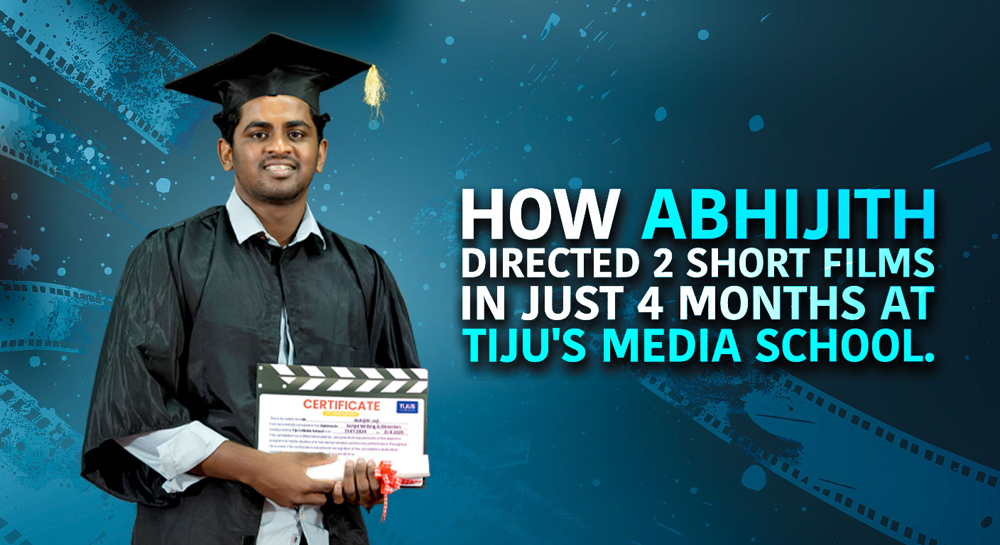 Today, we are breaking those walls down. We are sharing the real-life success story of Abhijith Joji, a proud student from the first-ever batch of Tiju’s Media School. His transformation from a regular movie lover to a Short Film Director in just four months is the proof you’ve been looking for.