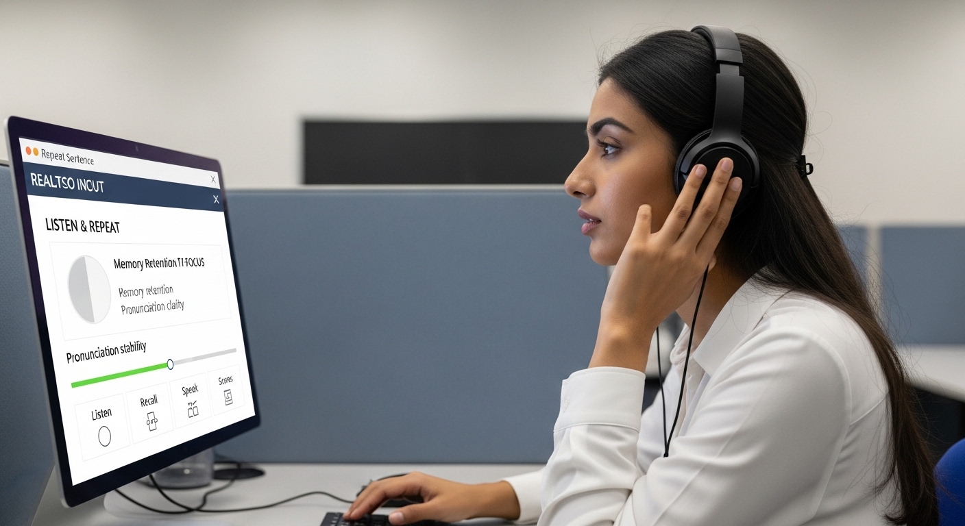 This reduces memory overload because your brain remembers phrases, not isolated words. Strong chunking ability directly improves content accuracy in Repeat Sentence.